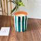 - Contenant : Terre cuite artisanale avec rayures noires.