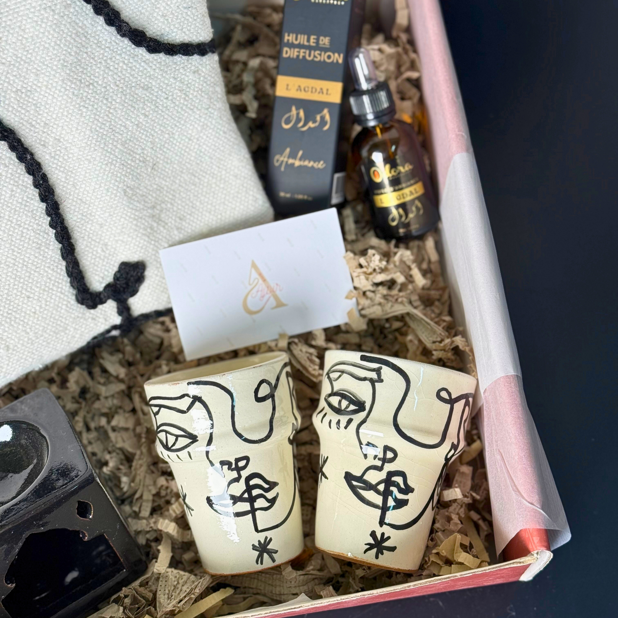 L’art et l’artisanat se rencontrent dans ce coffret cadeau artisanal Ajbir, une composition design et sensorielle qui célèbre le savoir-faire marocain sous une forme contemporaine.