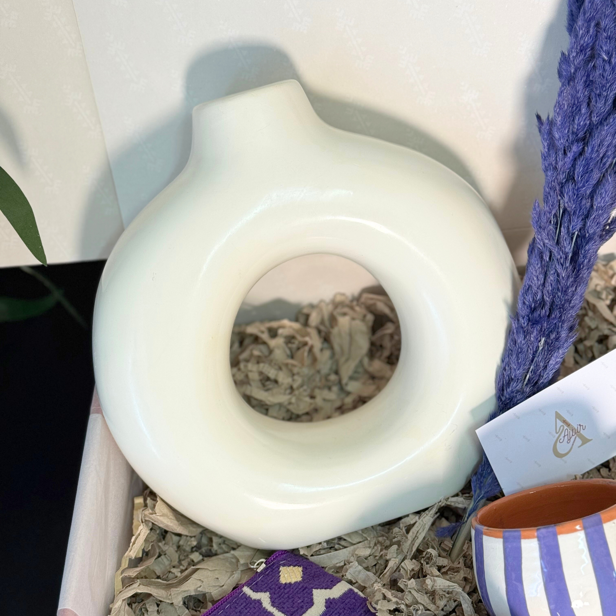 1 vase circulaire en céramique crème au design moderne et minimaliste