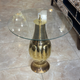 Sa structure en laiton bronze et ses motifs minutieusement gravés font de cette table une pièce maîtresse idéale pour tout type d'intérieur, qu'il soit moderne ou traditionnel. Elle peut servir de centre de table, d'élément décoratif ou de support fonctionnel pour divers objets.
