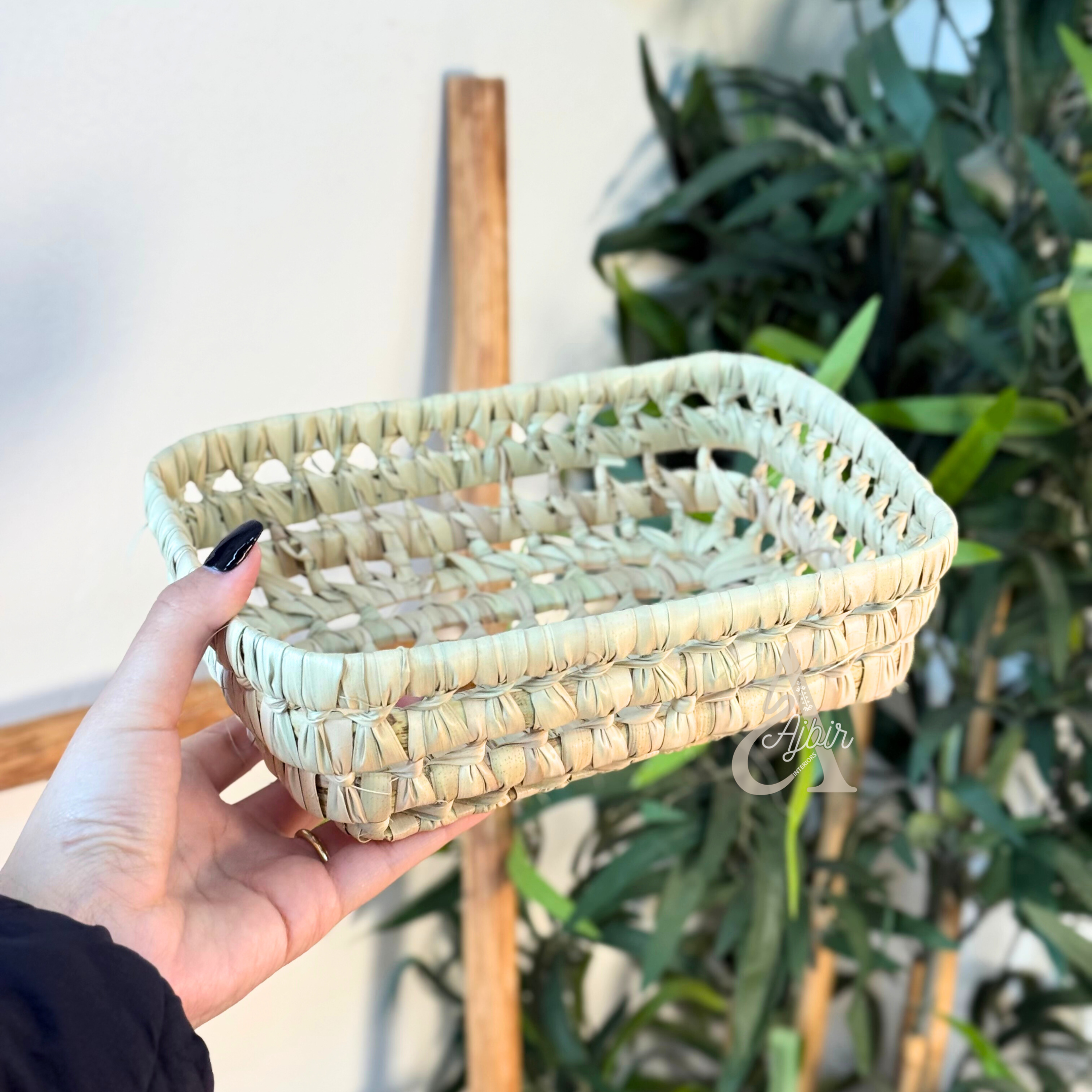 Le panier rectangulaire en raphia Ajbir Interiors est une pièce décorative et fonctionnelle entièrement tressée à la main par nos artisans marocains. Son tressage aéré, sa forme rectangulaire pratique et sa texture naturelle en font un accessoire idéal pour organiser et embellir tous les espaces de la maison.