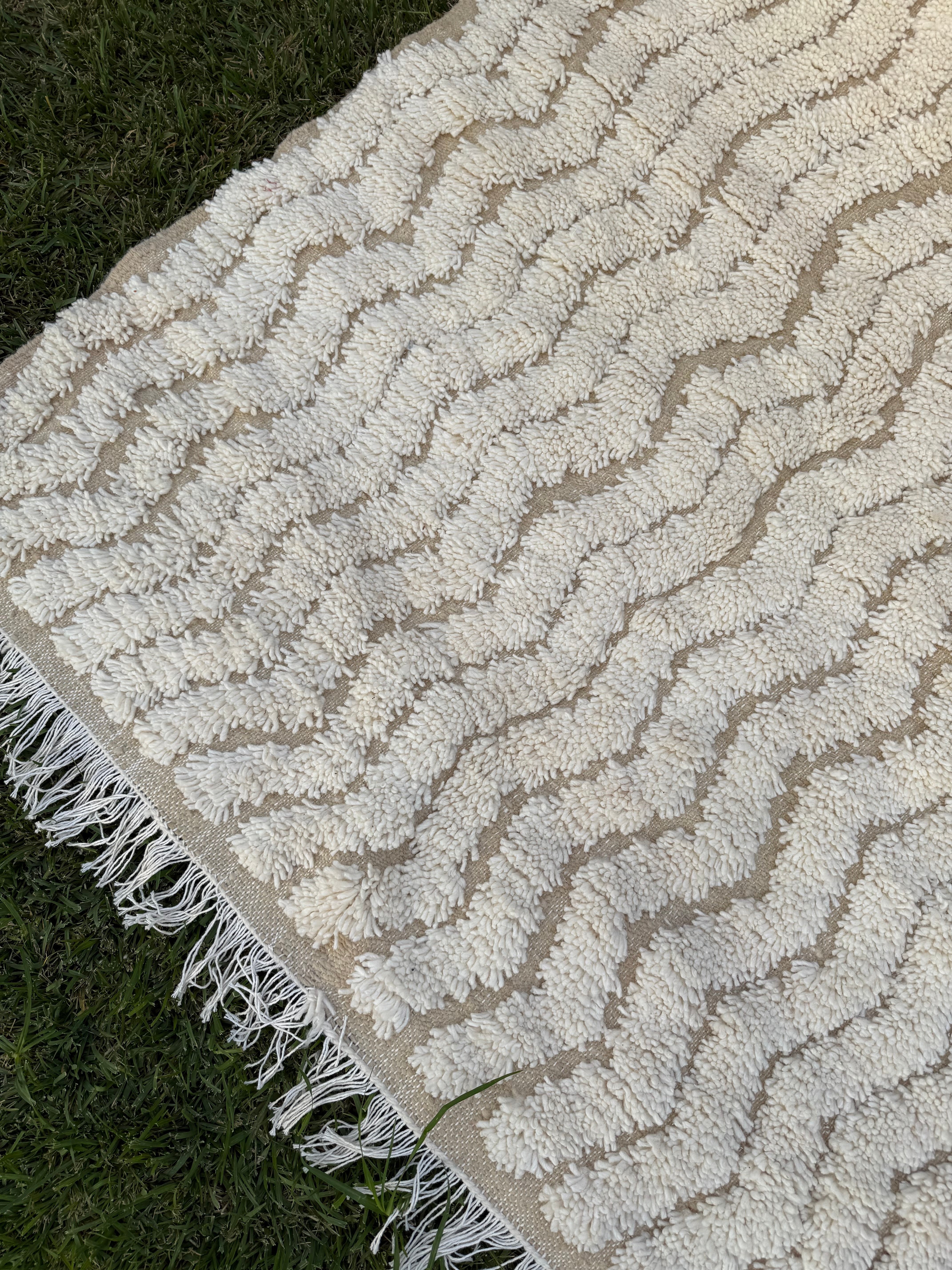 Tapis Berbère Azilal 100% Crème en Laine De Mouton 2,70m /1,40m
