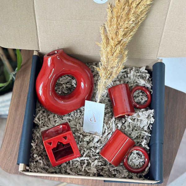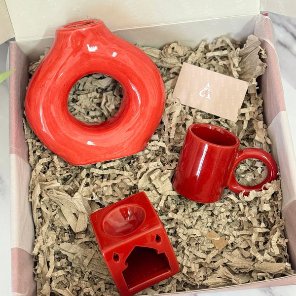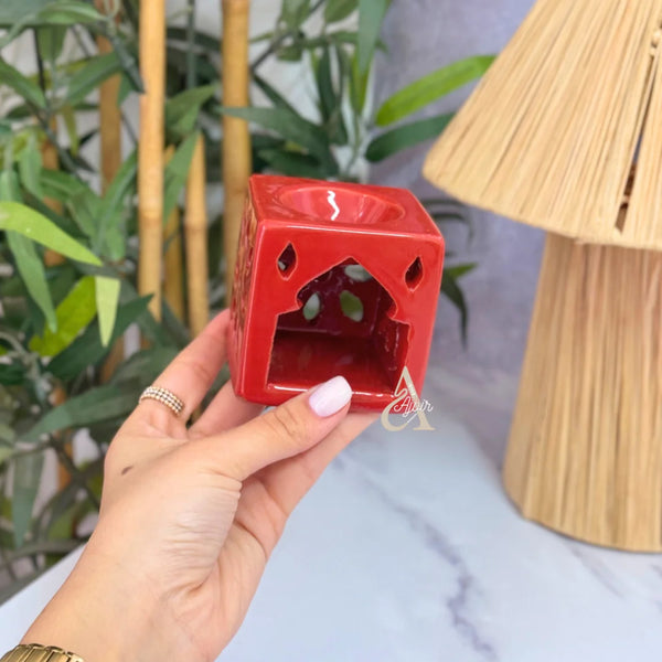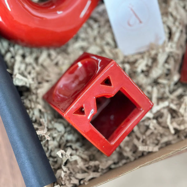Diffuseur à huile en céramique : Ce diffuseur à huile, fabriqué en céramique de qualité, diffuse des arômes agréables tout en apportant une atmosphère chaleureuse et authentique à votre maison. Il est également orné de la même couleur rouge éclatante.