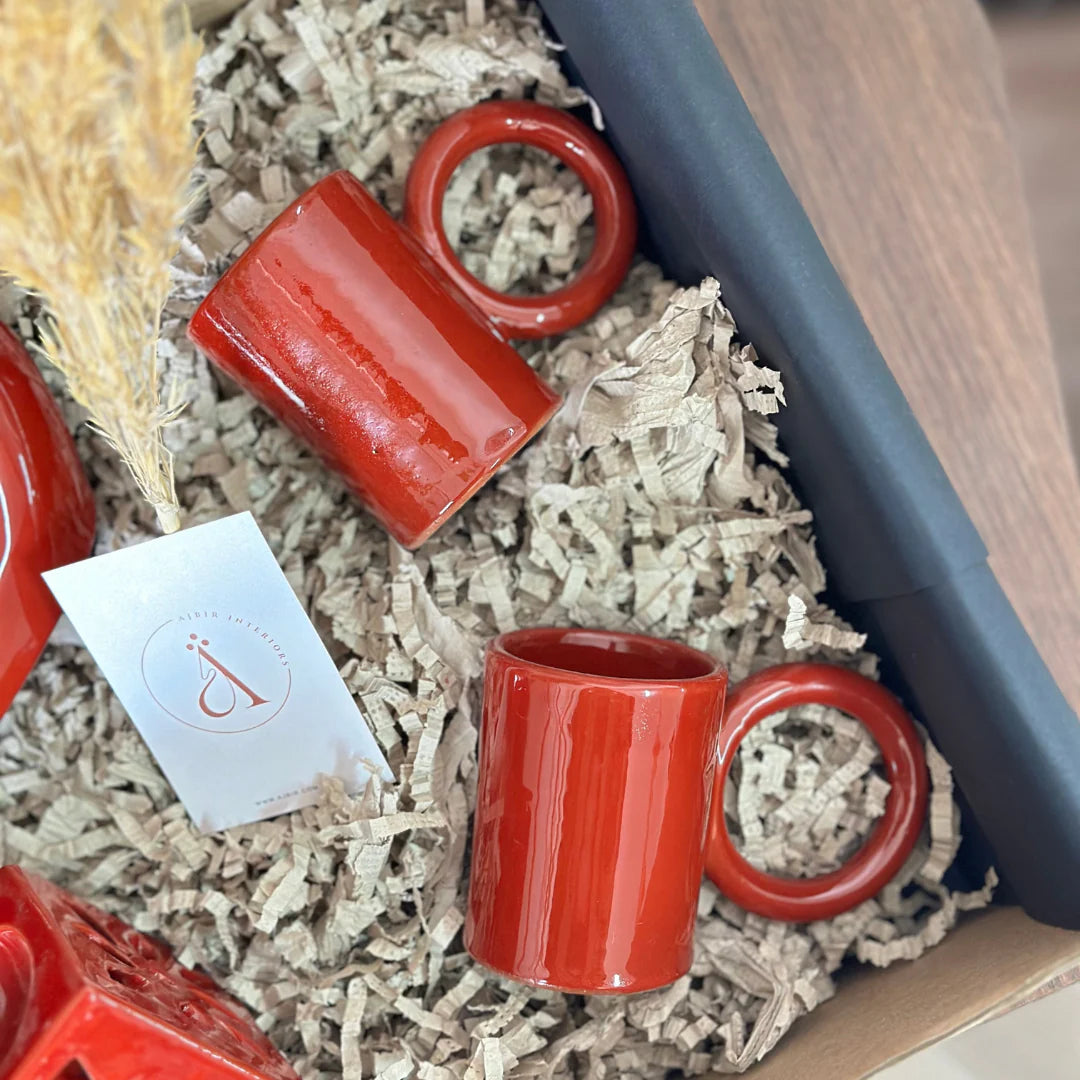 2 Petites tasses à café assortie : Accompagnant le vase, cette tasse à café est décorée dans le même rouge vernis, parfaite pour savourer un café tout en apportant une touche d'artisanat à votre table.