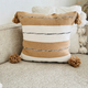 Housse de coussin artisanale à pompons 50cmx50cm bleu et beige