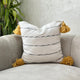 Housse de coussin artisanale à pompons Tit gris et blanc