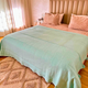 Plaid artisanal uni à pompons turquoise 2,80m x 2,00m