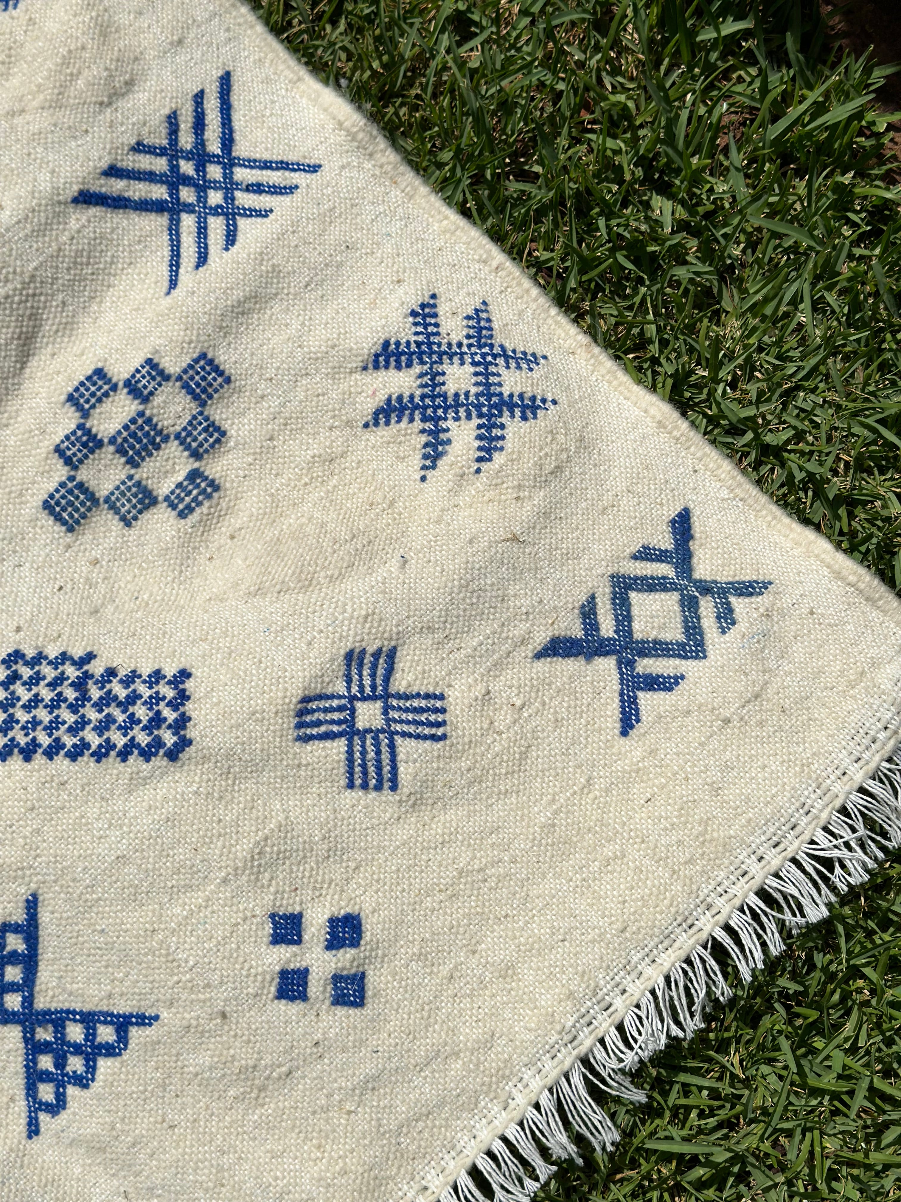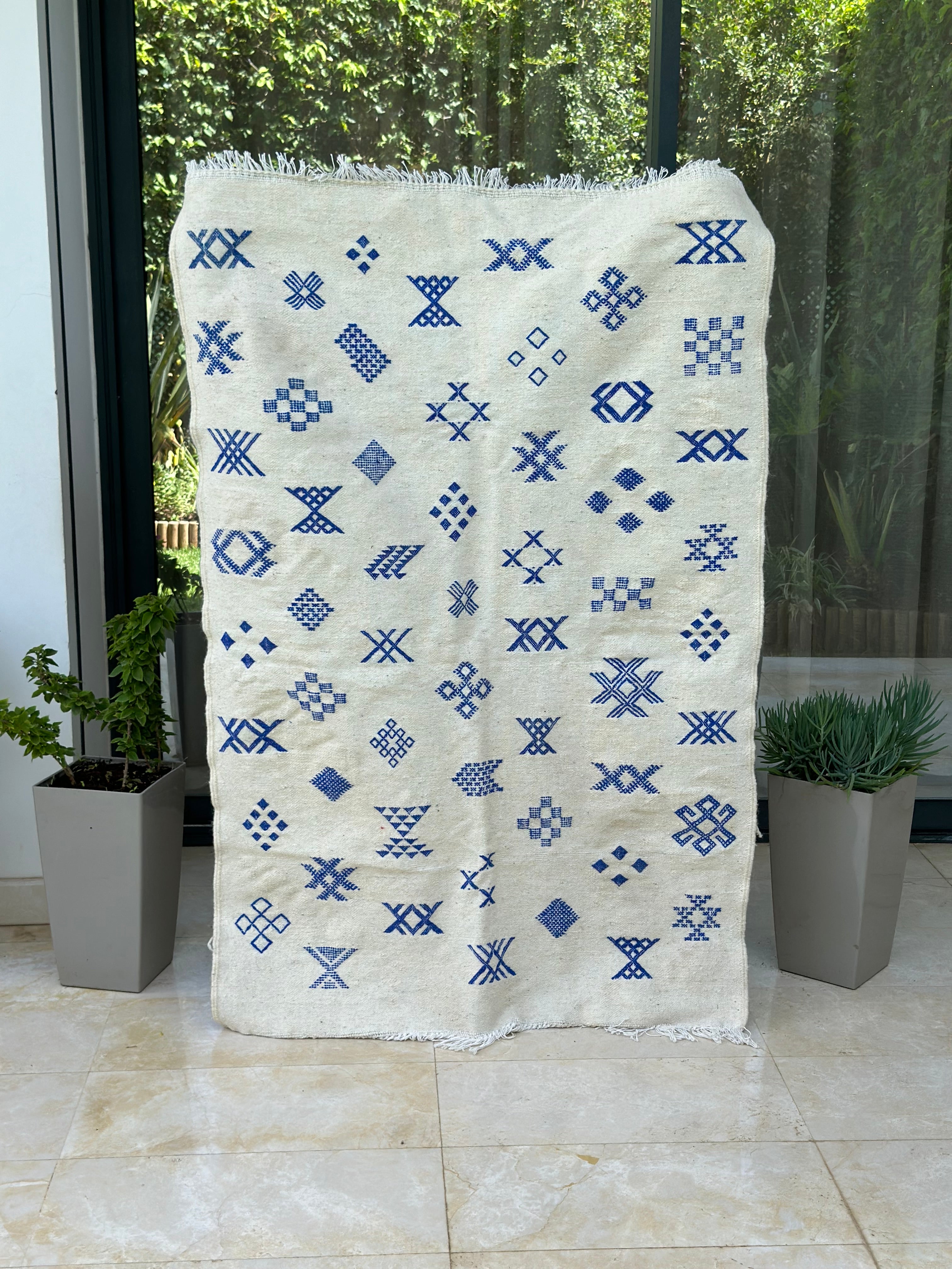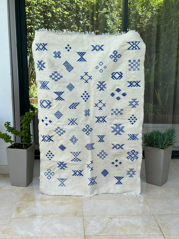 Tapis berbère Hanbal bleu amazigh 100% coton - 150cm/100cm