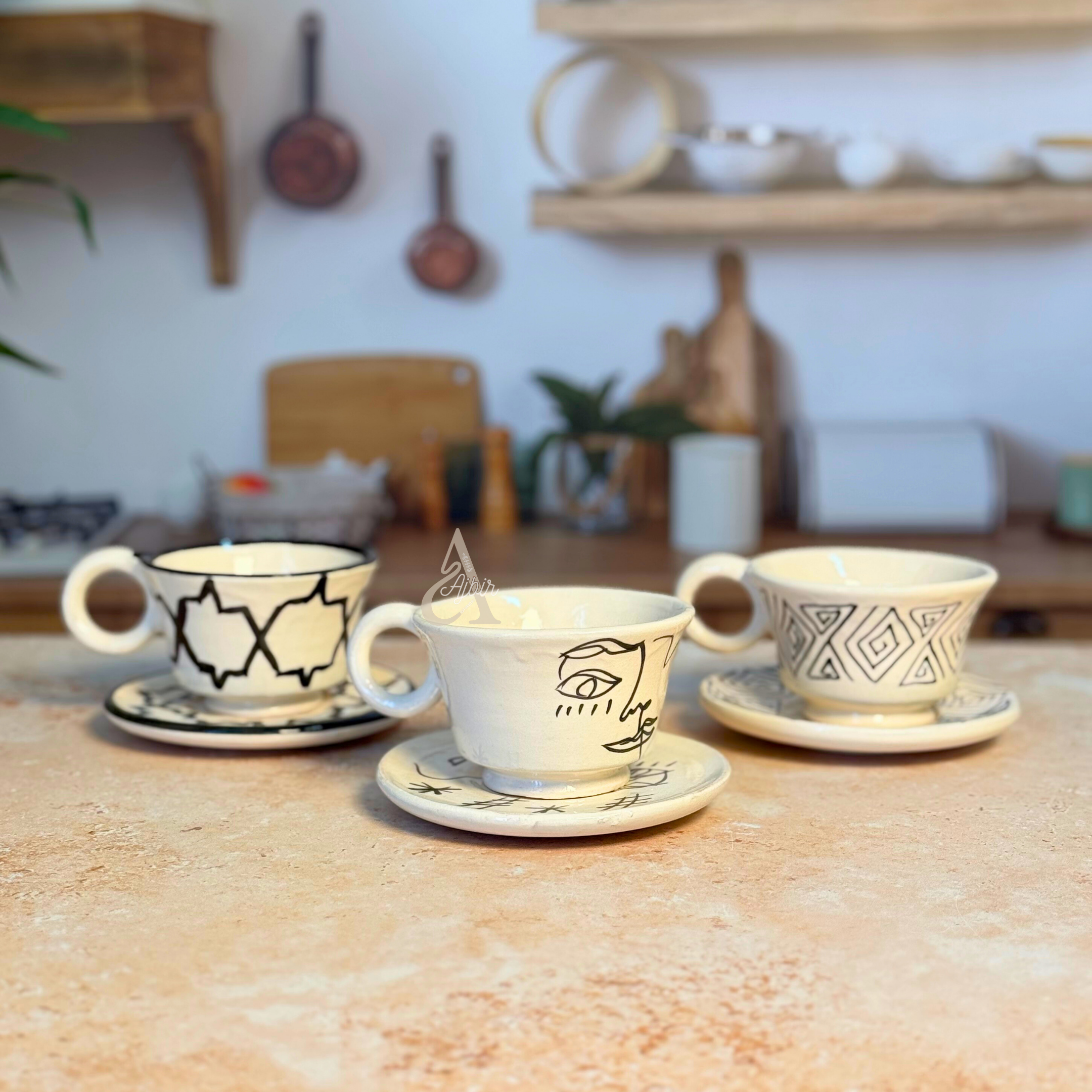Livrée avec sa sous-tasse assortie, elle habille votre table d’un charme brut et contemporain, parfait pour les amateurs d’authenticité et de design marocain.