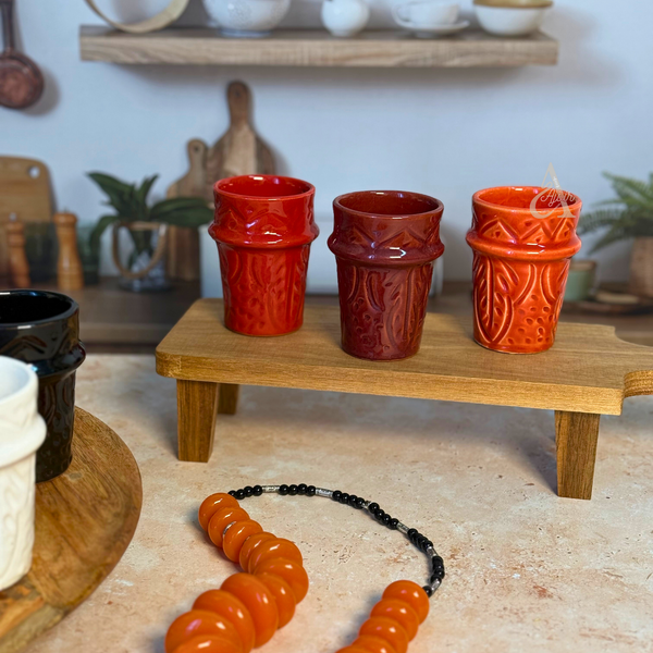 Avec la tasse Tizwelt vernis, ajoutez une touche d’authenticité marocaine et de modernité à votre quotidien, tout en soutenant le commerce équitable et l’artisanat durable.