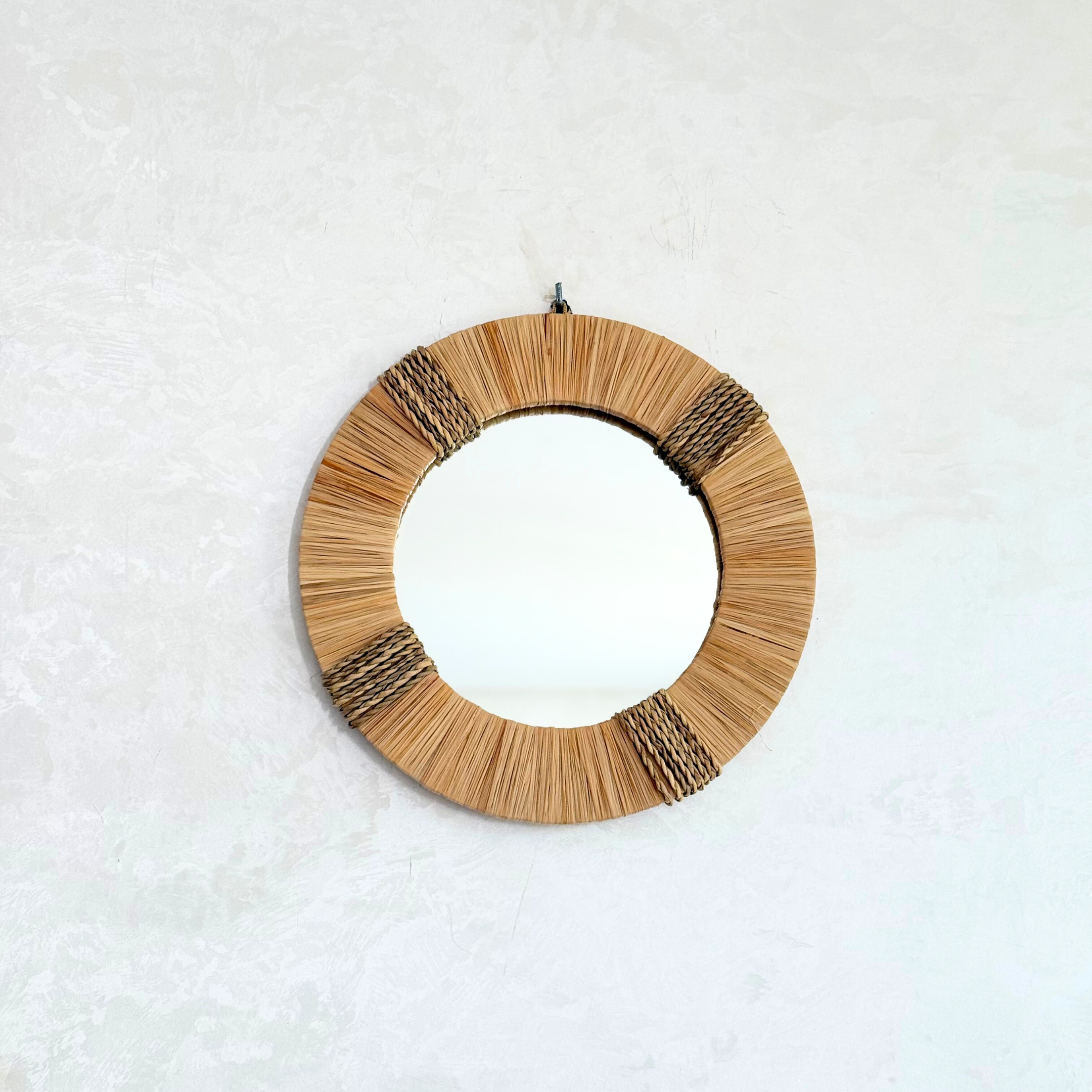 Miroir artisanal rond – Cadre en raphia naturel (3 tailles)