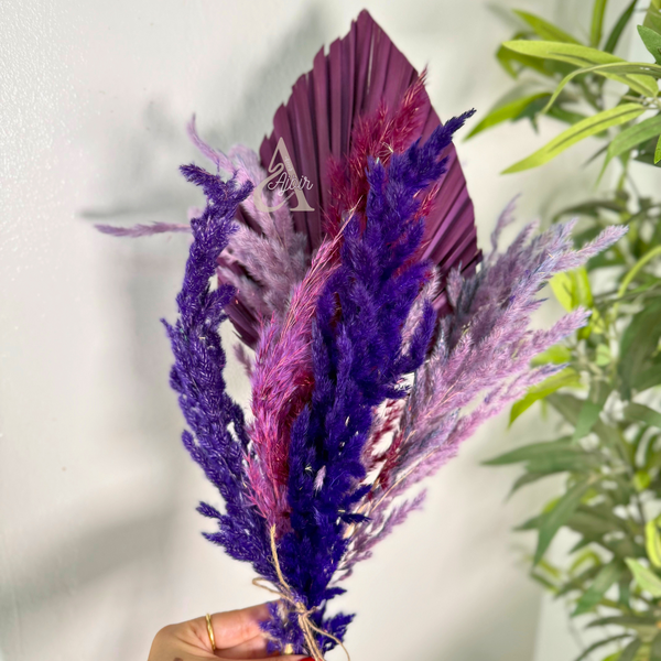 Remplissez votre maison d'une touche de beauté naturelle avec notre Bouquet de 7 plantes séchées mauves. Les pampas, connues pour leur élégance et leur durabilité, ajoutent une touche de sophistication à tout décor. Apportez une ambiance apaisante et relaxante à votre espace avec ces magnifiques fleurs séchées. Commandez maintenant et laissez-vous inspirer par leur beauté intemporelle.