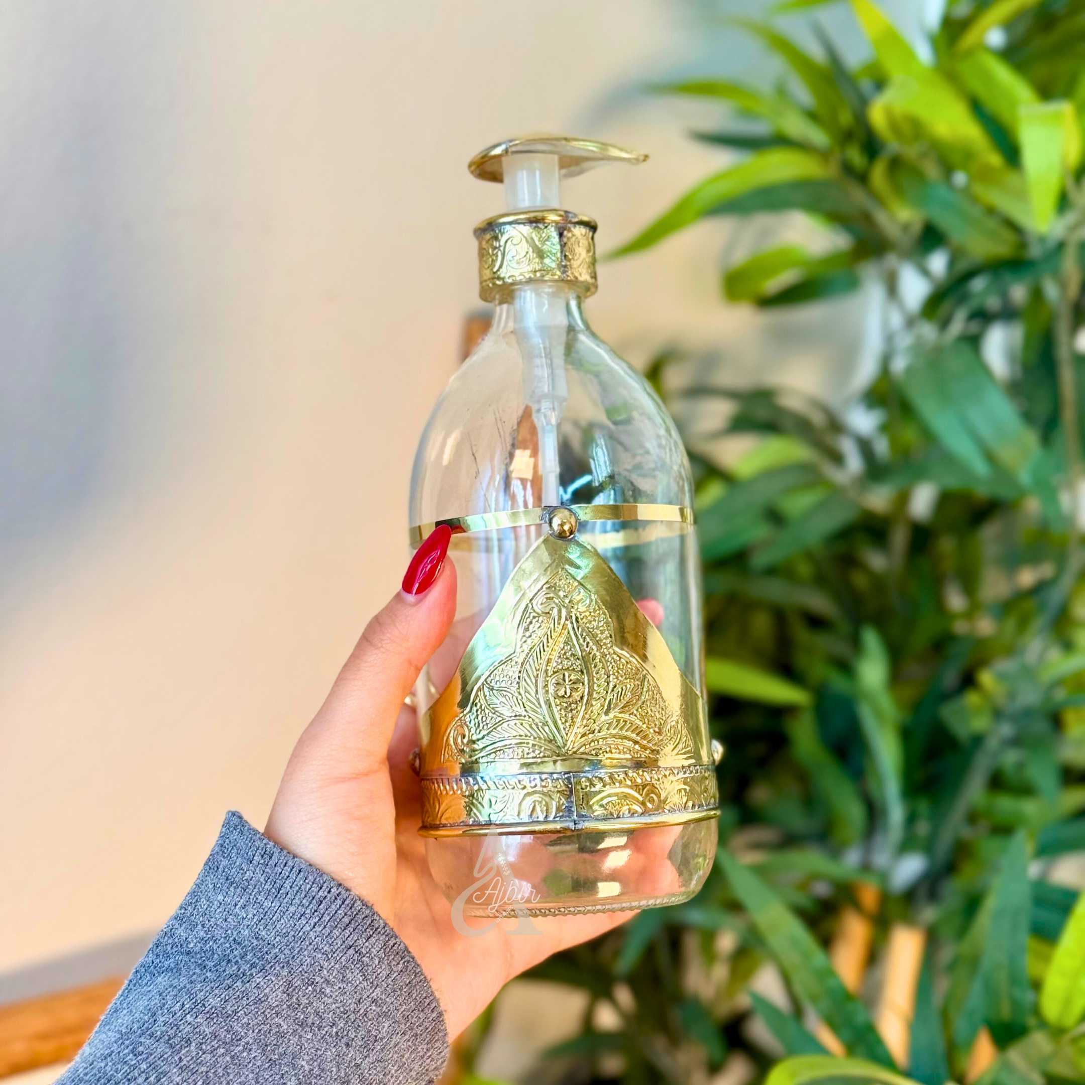 Distributeur de savon en verre et laiton doré grand Adrar