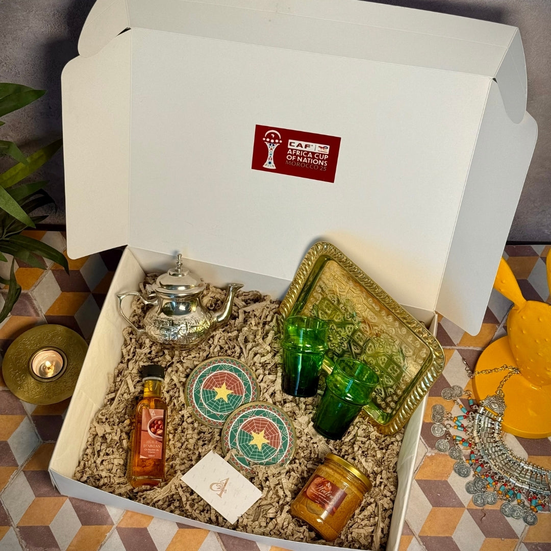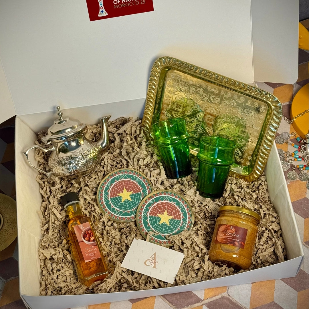 À l’occasion de la CAN 2025, Ajbir met à l’honneur le Burkina Faso avec un coffret aux accents de convivialité et de raffinement. Combinant gastronomie artisanale marocaine, art de la table traditionnel et objets décoratifs uniques, ce coffret est pensé pour les entreprises, comités d’accueil, agences ou particuliers souhaitant offrir un présent élégant et symbolique.