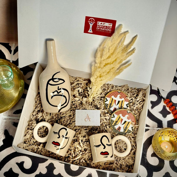 Un coffret cadeau haut de gamme inspiré de l’Égypte et conçu pour la CAN 2025, alliant artisanat marocain authentique et esthétique contemporaine. Chaque pièce a été choisie avec soin pour séduire les entreprises, agences événementielles, influenceurs et marques en quête de cadeaux uniques et raffinés.