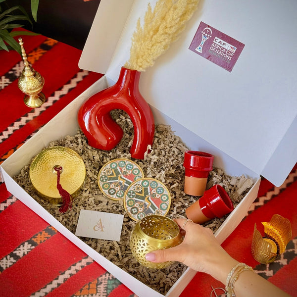 Un coffret chaleureux et stylisé aux couleurs vibrantes de l’Afrique du Sud, conçu pour célébrer la diversité et l’art de vivre africain à l’occasion de la CAN 2025 :