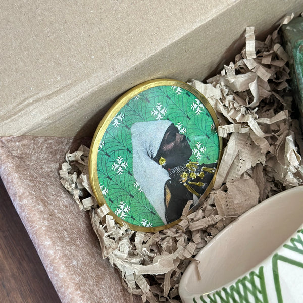 - Sous tasse en laiton doré aux tons verts : Élégante et raffinée, cette sous tasse en laiton doré ajoute une dimension artistique et culturelle à votre service de thé ou de café, tout en célébrant la beauté féminine à travers des tons verts apaisants.