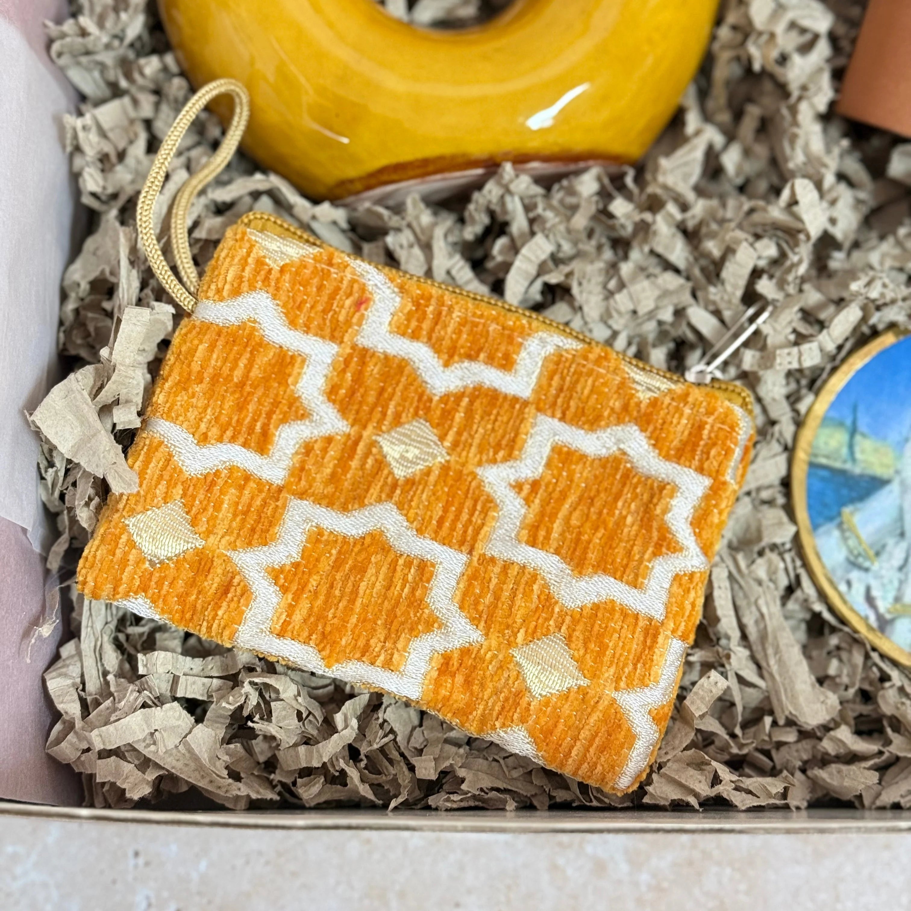 - Un porte-monnaie assorti : Confectionné avec des tissus traditionnels et des motifs "zellige" en harmonie avec le mug, ce porte-monnaie artisanal est à la fois pratique et élégant, parfait pour ranger l’essentiel avec style.