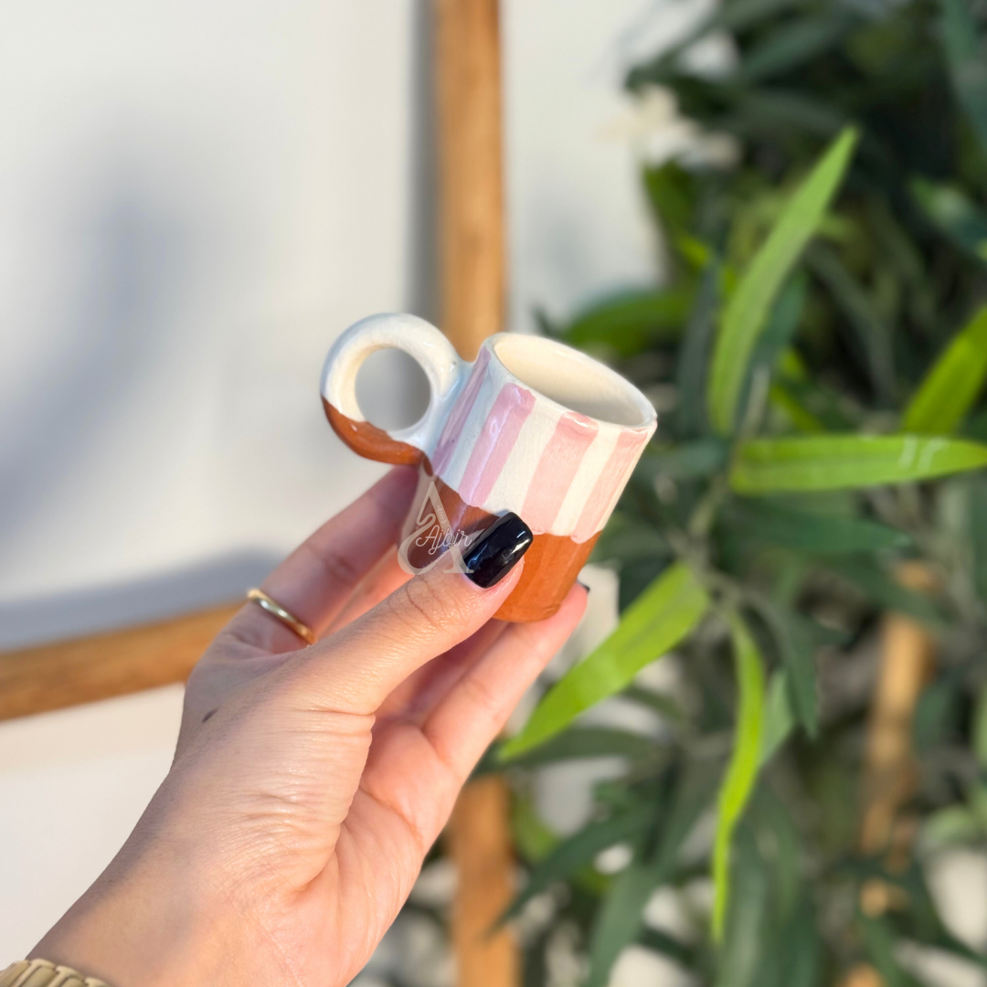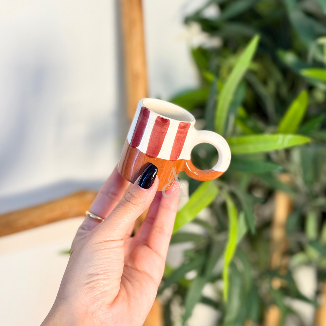 Cette mini tasse bicolore rayée en céramique artisanale est une pièce délicate et pleine de caractère, façonnée à la main selon un savoir-faire marocain authentique. Sa petite taille et son design graphique en font un objet à la fois fonctionnel et décoratif, idéal pour sublimer les moments du quotidien.