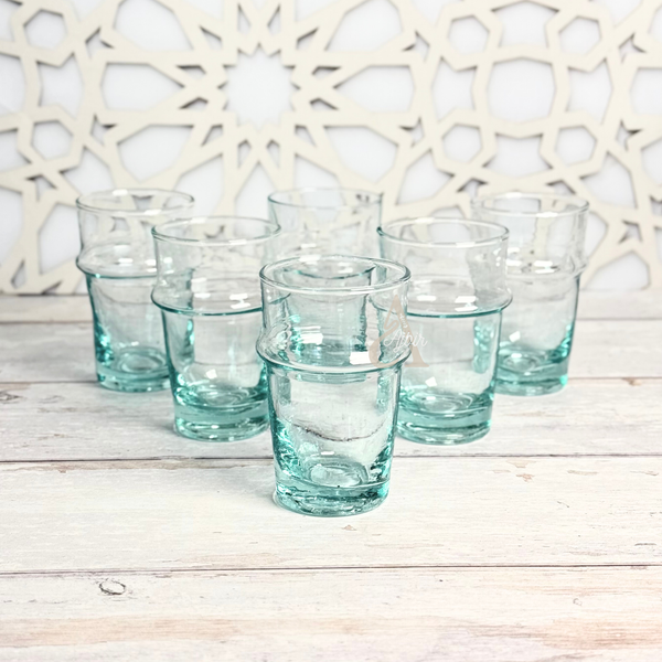 Découvrez le charme intemporel de l’artisanat marocain avec ce set de 6 verres à thé beldi transparents, soufflés à la bouche selon la tradition des maîtres verriers marocains.